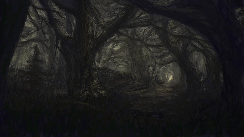 Looking around, you find yourself in what appears to be the forest, likely not far from the lake, as you recognize the low, snow-laden bulk of the stone wall that runs parallel to the river, and yet there is something off about the familiar landscape. The sun dipped below the mountains at some point in the midst of it all, plunging the once pale, clouded sky into a purple-hued void – but that’s not it, that’s not what makes your mind itch, and your eyes squint as if gazing into a tidepool. Everything appears ever so slightly skewed: tree limbs twisted at impossible angles, the white snake of the stone wall undulating as if alive, and the snow doesn’t crunch or squelch beneath you, rather it feels like walking on lambs’ wool, soft and dull, almost beckoning you to sleep. But you can’t yet, they asked if you have questions, and considering this might be your last chance to even open your lips and craft sounds into words, you’d better think of something.
